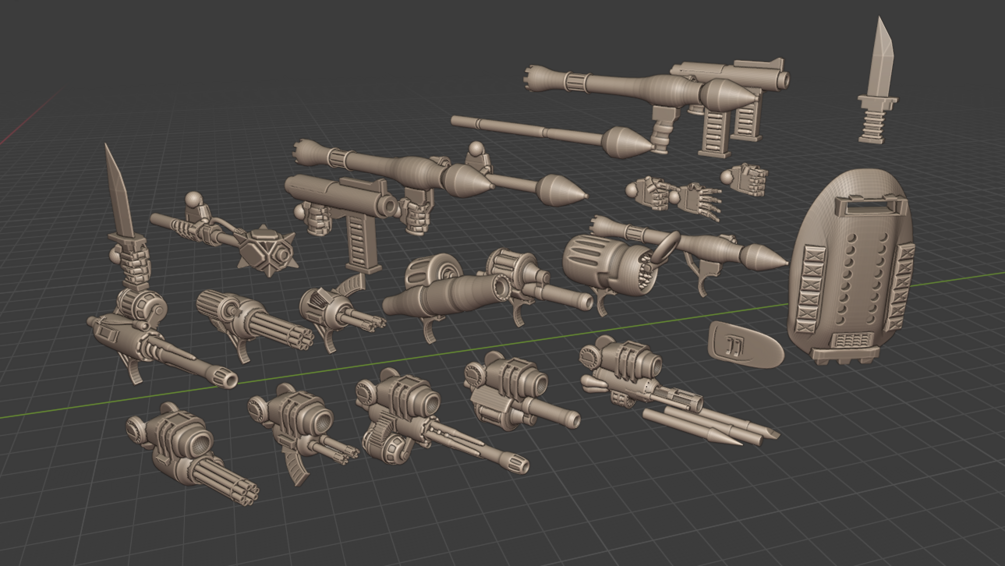 7 shoulder mounted weapons including mortars, autocannons and miniguns